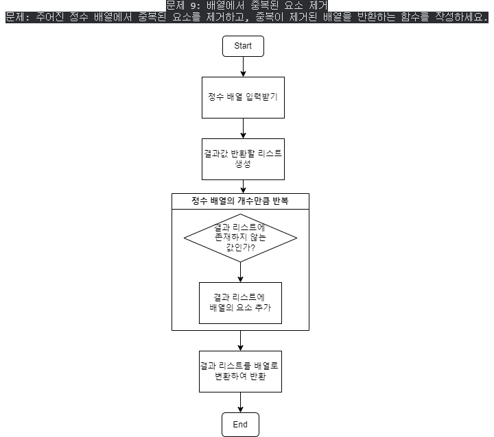 문제 9: 배열에서 중복된 요소 제거 문제: 주어진 정수 배열에서 중복된 요소를 제거하고, 중복이 제거된 배열을 반환하는 함수를 작성하세요.