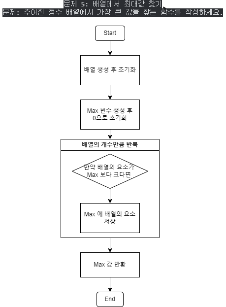 문제 5: 배열에서 최대값 찾기 문제: 주어진 정수 배열에서 가장 큰 값을 찾는 함수를 작성하세요.
