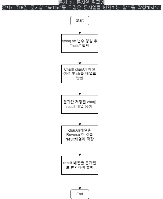 문제 2: 문자열 뒤집기 문제: 주어진 문자열 "hello"를 뒤집은 문자열을 반환하는 함수를 작성하세요.