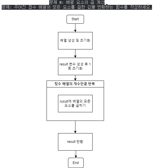 문제 8: 배열 요소의 곱 계산 문제: 주어진 정수 배열의 모든 요소를 곱한 값을 반환하는 함수를 작성하세요.