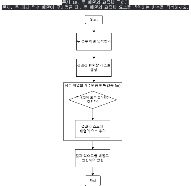 문제 10: 두 배열의 교집합 구하기 문제: 두 개의 정수 배열이 주어졌을 때, 두 배열의 교집합 요소를 반환하는 함수를 작성하세요.