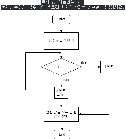 문제 3: 팩토리얼 계산 문제: 주어진 정수 n의 팩토리얼을 계산하는 함수를 작성하세요.